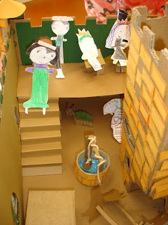 Passeando pelo seu blogue e admirando as ilustrações que me fazem viajar e sonhar, parei nas que me fizeram recordar um projecto desenvolvido recentemente com as crianças sobre o Castelo (aqui): as ilustrações d'O Filho do Demónio & A Adivinha do Rei com texto de Alice Vieira (2007).
